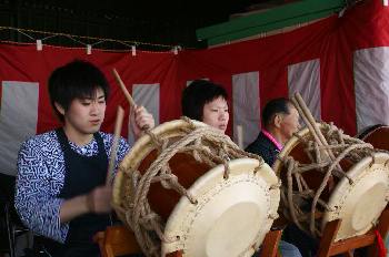 仁さんはちゃんと太鼓も打ってます。 |