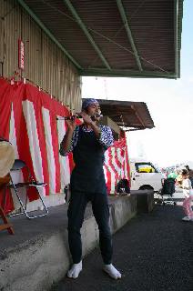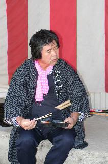 〔K.Hoshi会計〕 Waizumi師匠(本日欠席)の一番弟子です。 お囃子でも子どもたちの指導をしています。 去年よりはずっと体調が回復したようです。 |