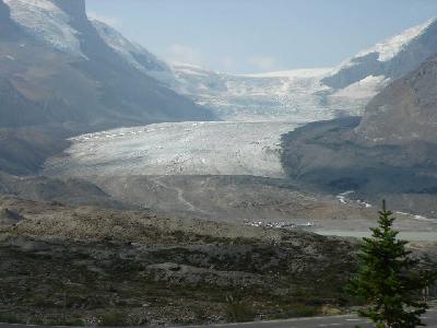| コロンビア大氷原「アサバスカ氷河」 地球温暖化の影響からか 年々氷河が縮んでいるそうです。 |